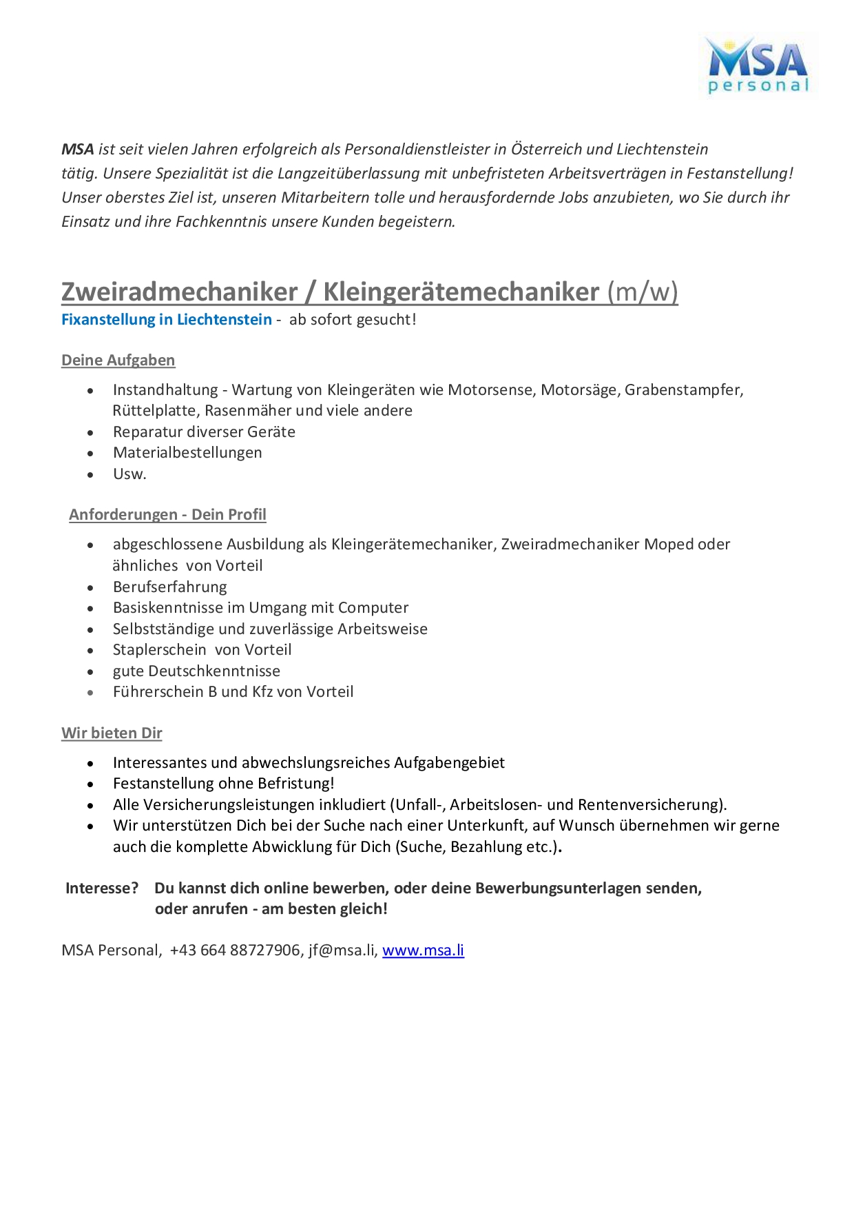 Jobs  Kleingerätemechaniker / Zweiradmechaniker m/w